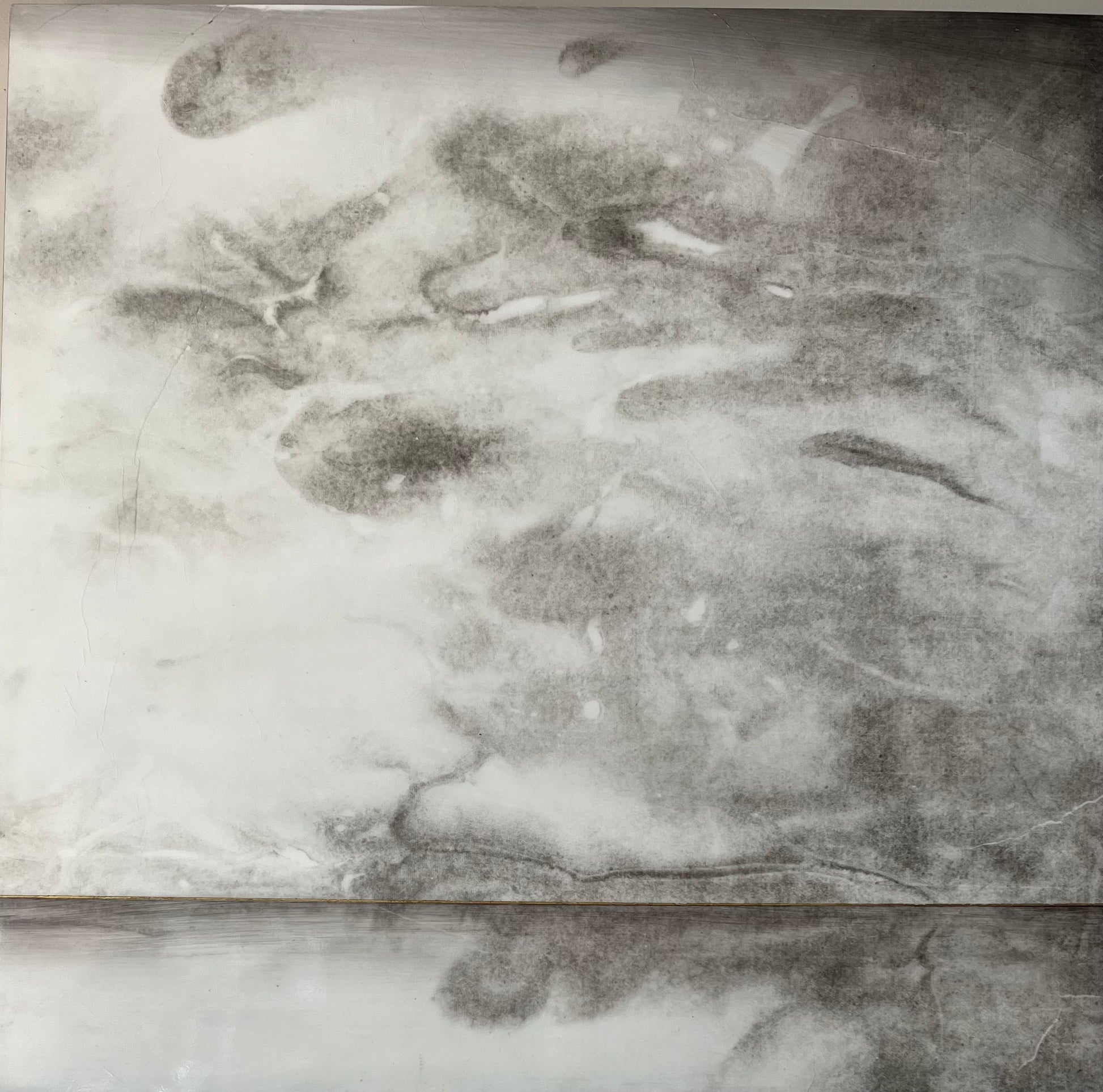 Rice paper sumi ink. Automotive paint on steel.