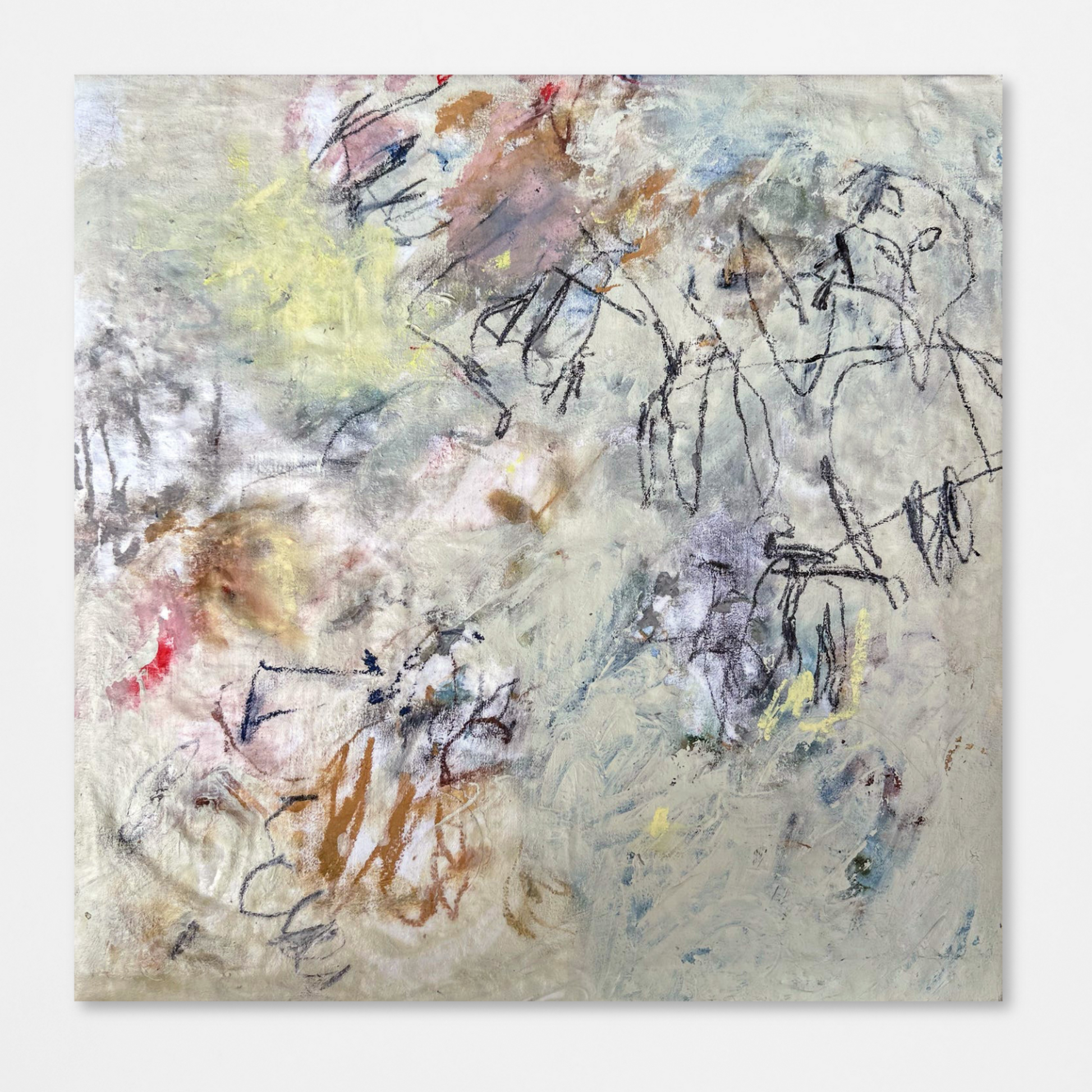 Acrylic, Gouache, Oil Stick, Oil Pastels, Graphite on Antique Textile