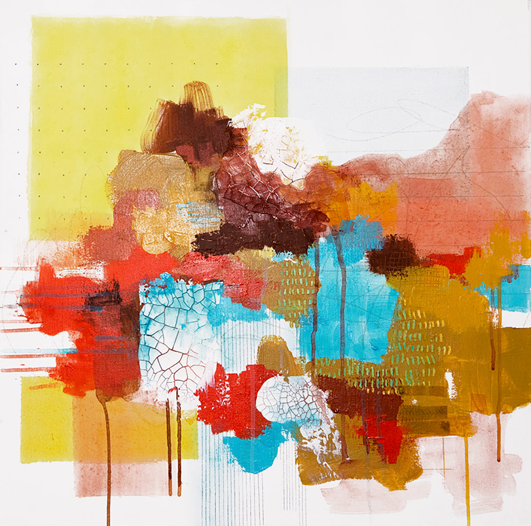 Acrylic, graphite, and plaster on canvas, 24 x 24 inches