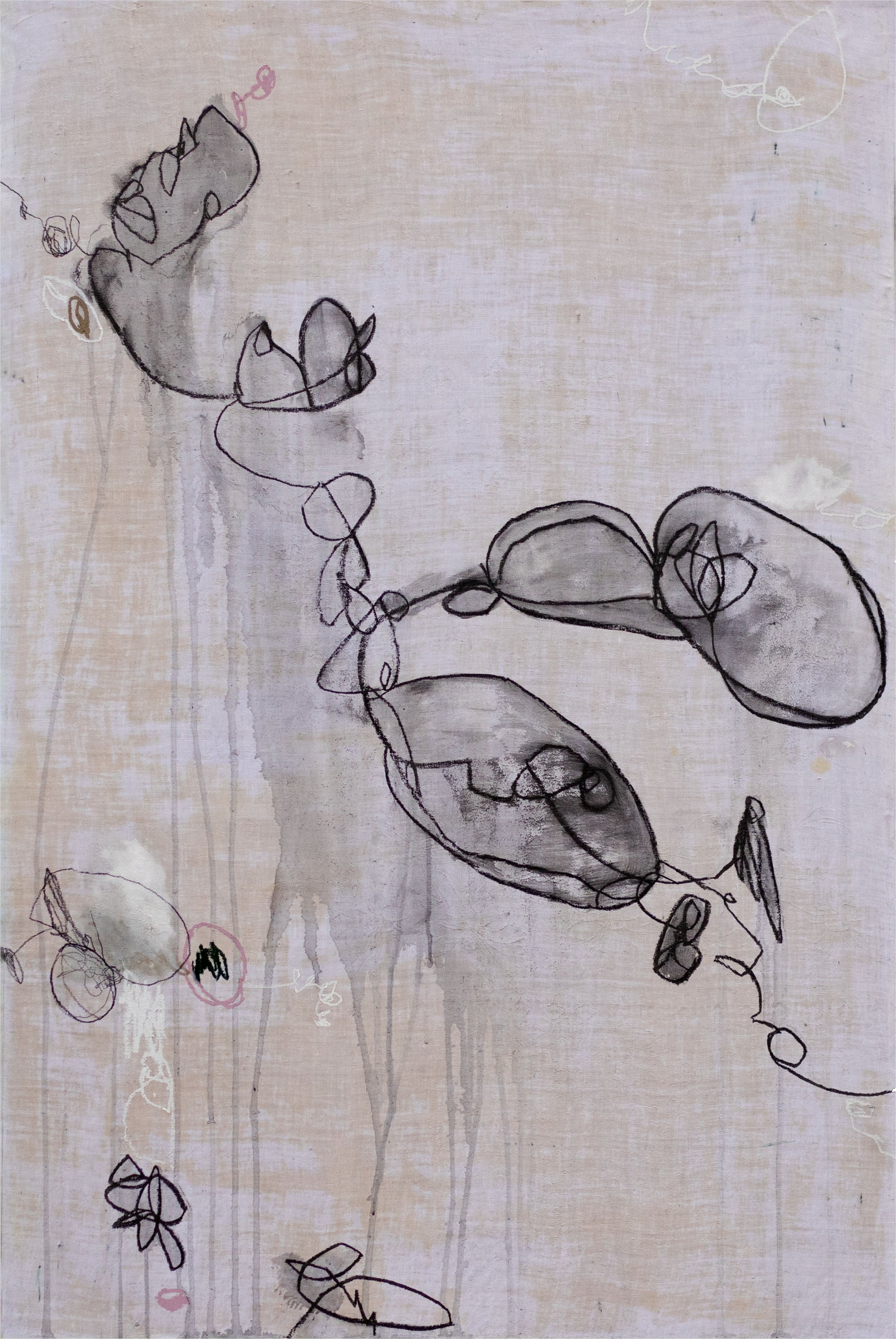 Acrylic, Oil Stick, Oil Pastels, Graphite on Antique Textile on Board