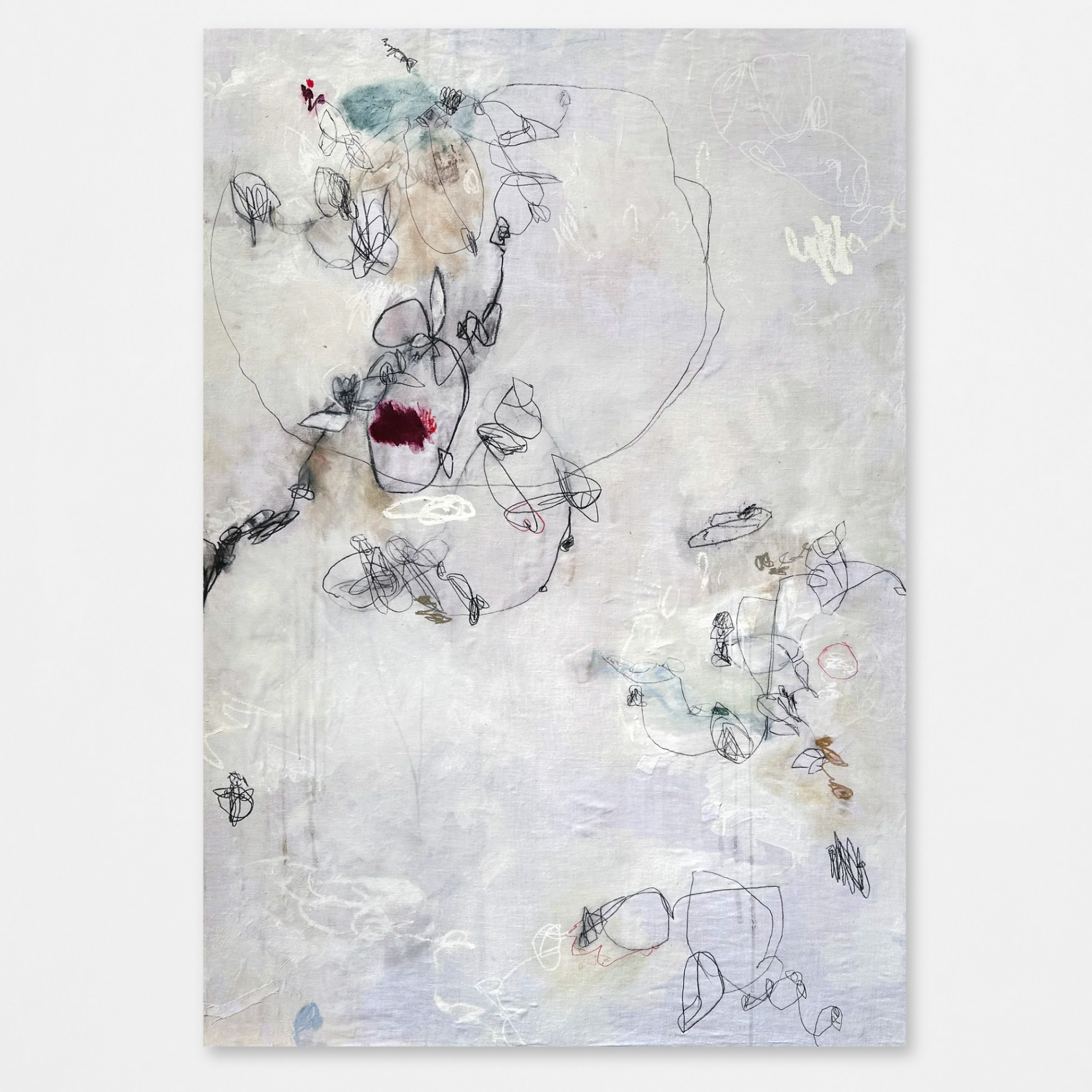 Acrylic, Gouache, Oil Stick, Oil Pastels, Graphite on Antique Textile on board