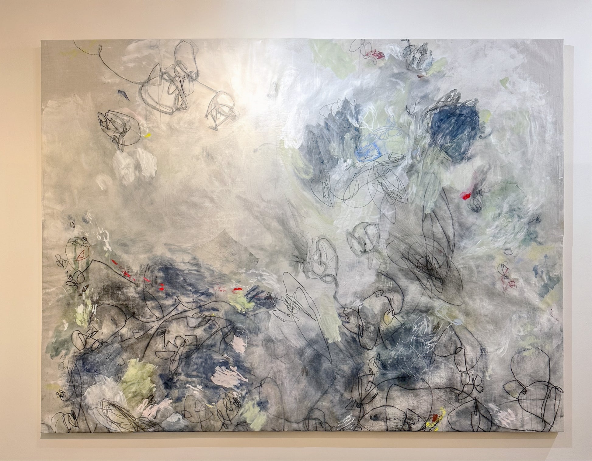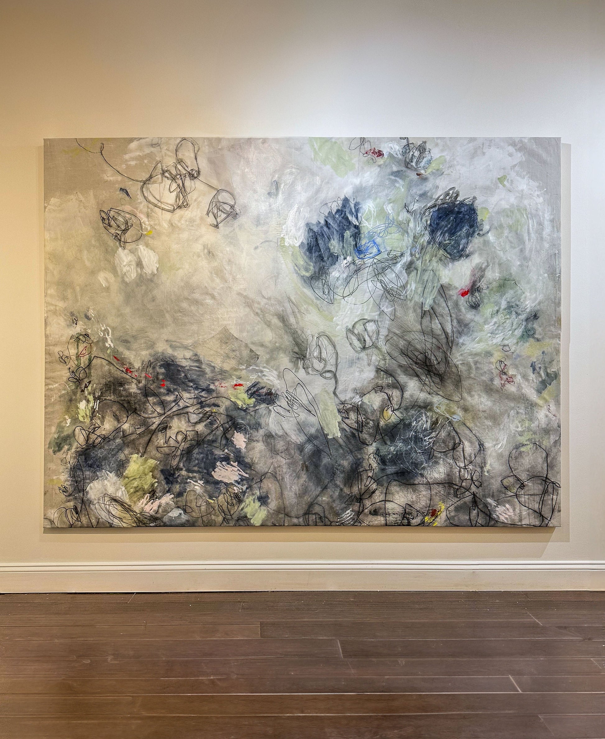 Acrylic, Gouache, Oil Stick, Oil Pastels, Graphite, Piña Cloth on Antique Textile