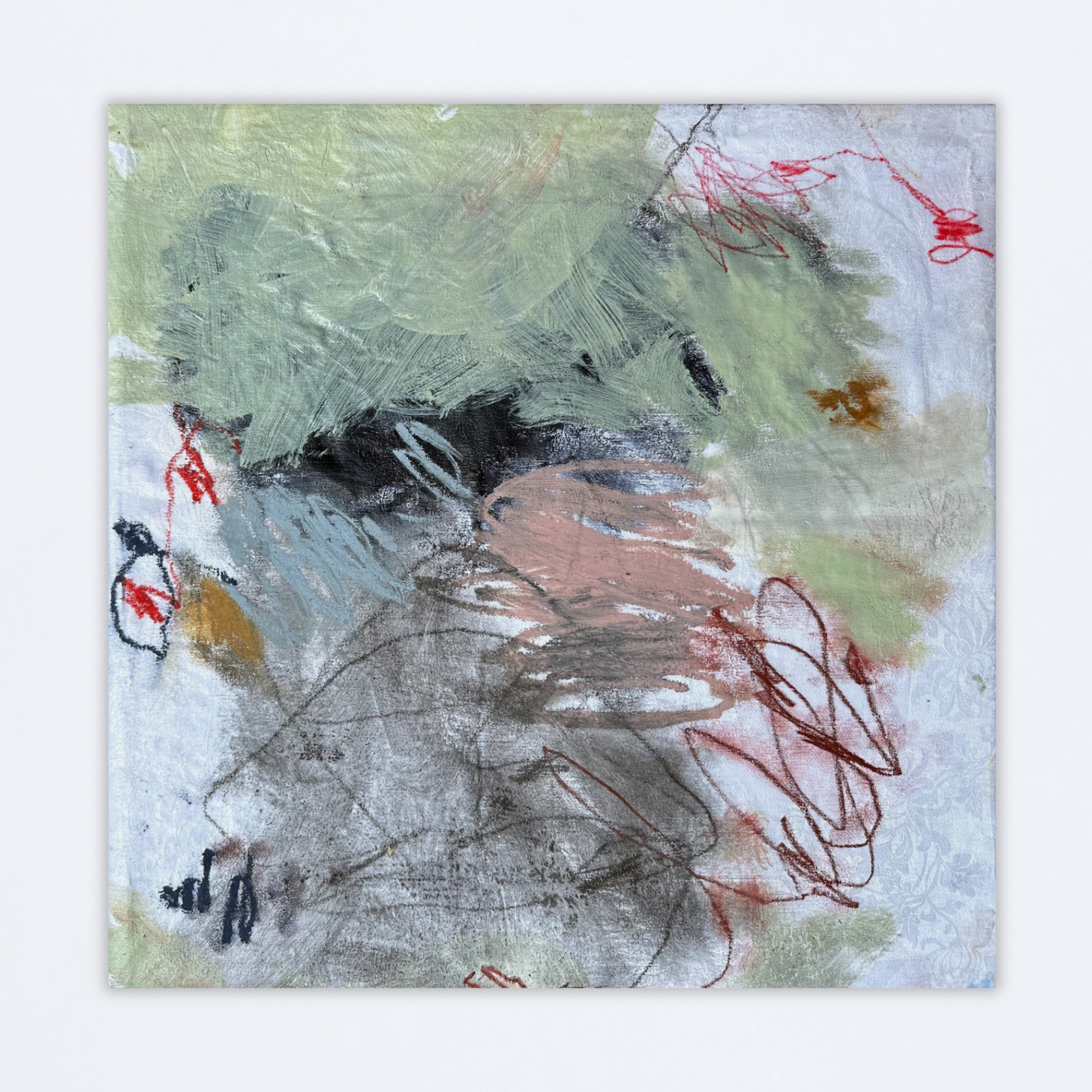 Acrylic, Gouache, Oil Stick, Oil Pastels, Graphite on Antique Textile